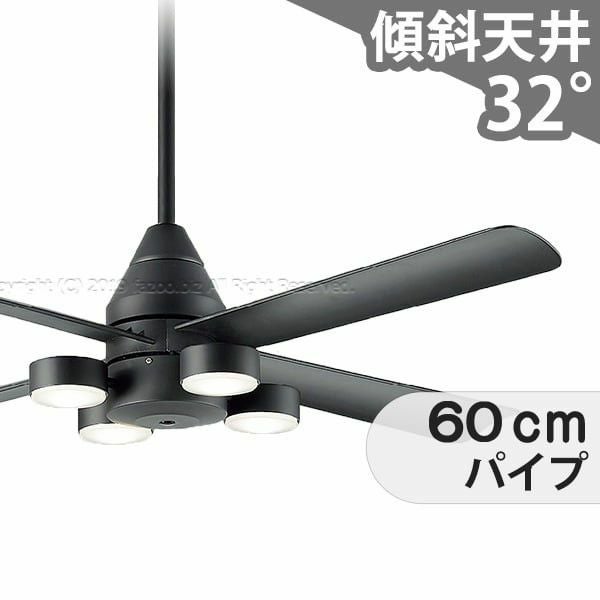 大風量 傾斜対応 LED 電球色 4灯 軽量 ダイコー製シーリングファンライト【DKB023】