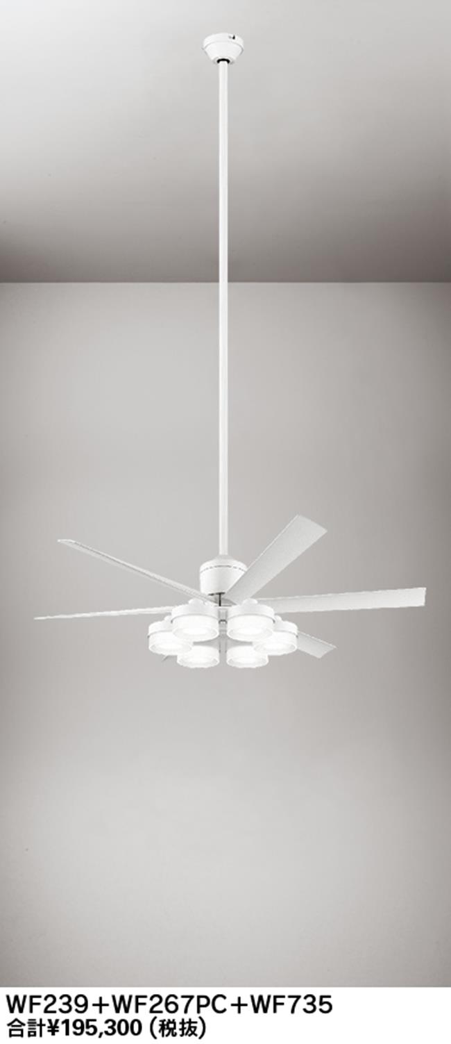 WF239 + WF267PR + WF735,高演色LED [R15] 大風量 傾斜対応 LED 調光・光色切替(電球色-昼白色) 6灯 ODELIC(オーデリック)製シーリングファンライト